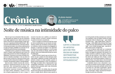 Toda vez que vou ao Cineteatro São Luiz, sinto-me abençoado por usufruir do que ele representa como lugar sagrado da arte. Hoje (11) à noite será um desses momentos de experienciação de algo especial, com o espetáculo Sentimental Demais – Marcos Lessa canta Evaldo Gouveia. O formato intimista dessa apresentação, com artistas e plateia juntos no palco principal, possibilita um exercício de clariaudiência pela harmonia da proximidade.