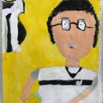 - E aqui estou eu em desenho caprichado de Anastácia que foi transformado numa bela tela com aplicação de tecido pela mãe Luziara.