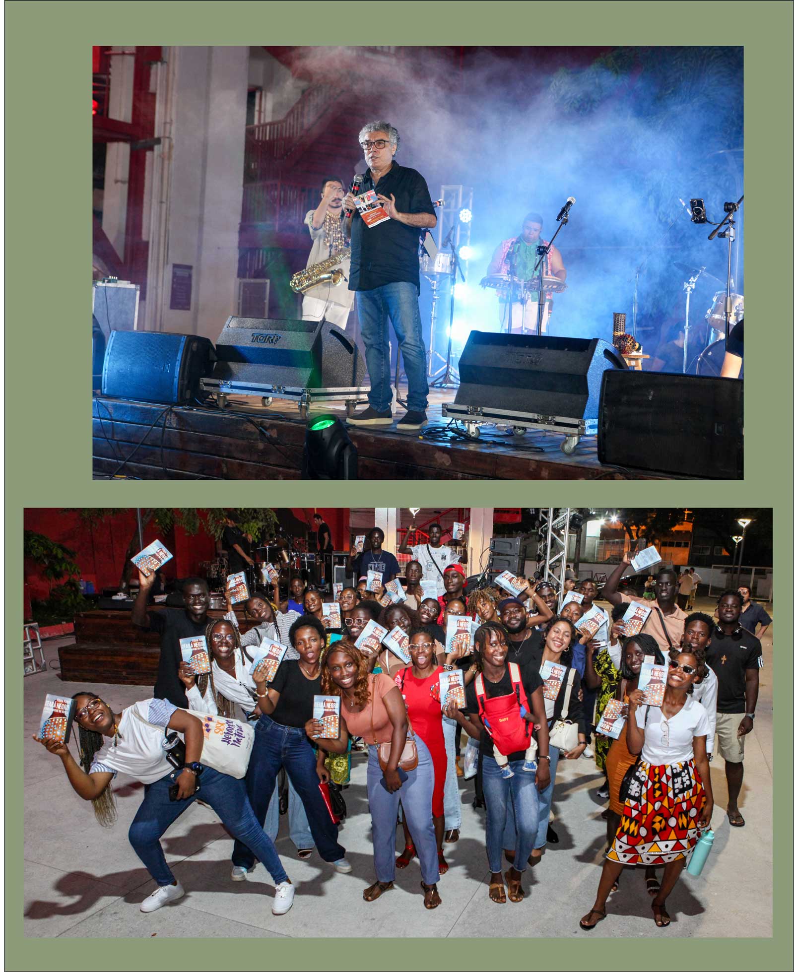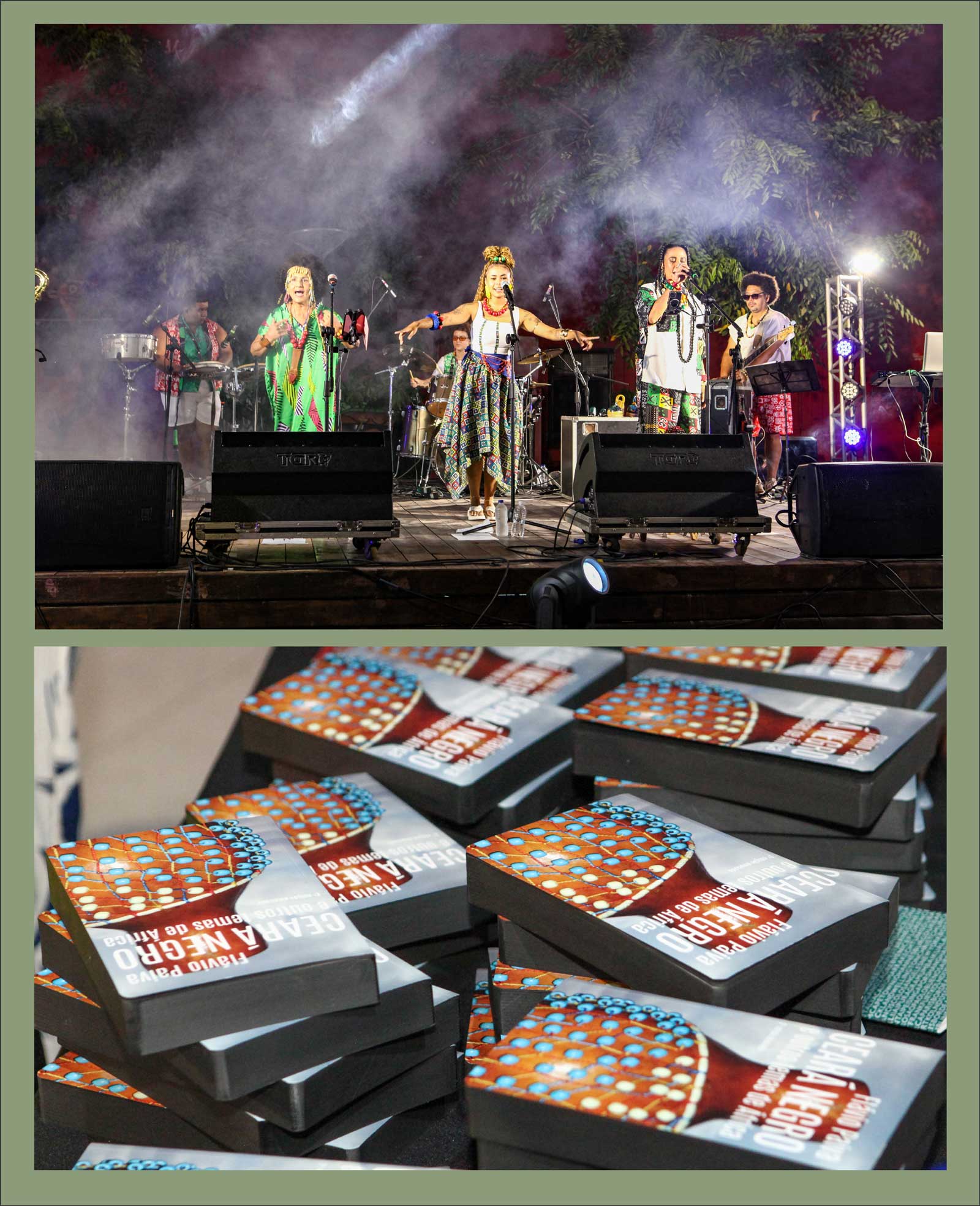 - 2. Flávio Paiva fala sobre a proposta de espalhar impressões sobre África como forma de contribuir com a luta antirracista e pela igualdade racial. Cita estudantes da Unilab que fizeram as seguintes pontuações significativas: o guineense Sana Mané que manifestou contentamento com as movimentações do “nosso livro” e a moçambicana Zulfa Juma Momade, que assina a epígrafe: “Flávio Paiva é um autor que não quer ter razão, mas provocar consciência”. O autor agradeceu à Unilab, ao IFCE, à Omni Editora, ao CDMAC, à Editora Riso, às três cantoras, à banda, ao autor da Lei do Ceará Negro, Acrísio Sena, às intérpretes da música-tema “Ceará Negro” (Paulo Lepetit / Flávio Paiva), Virgínia Rosa e Fattú Djakité, e a toda a equipe de comunicação e produção do evento. 2.1 Em canto espontâneo o grupo Vozes D´África deu voz de coro a “Ceará Negro” e “Badja Tina”.